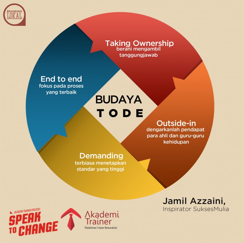 “Budaya T.O.D.E = Taking ownership, Outside-in, Demanding, dan End to end. Budaya perusahaan kelas dunia..” Jamil Azzaini’s quote